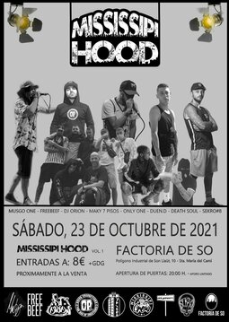 MISSISSIPI CREW da el pistoletazo de salida presentando en directo MISSISSIPI HOOD Vol.1, el primer concierto de la nueva gira protagonizada por Maky 7 Pisos y DJ Orion, donde podrás disfrutar de parte del nuevo EP que aún está por salir, DESAHOGO LÍRICO, además de dar un repaso a algunos de sus temas más clásicos.